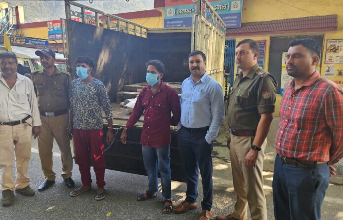 सूचना पर कार्यवाही करते हुए पुलिस व सीआइयू की टीम ने क्षेत्र में संयुक्त तलाश अभियान चला दिया । इस दौरान संयुक्त टीम को शिवपुरी मुनि की रेती के समीप एक संदिग्ध पिकअप वाहन आता हुआ दिखायी दिया। टीम ने जब उसे रूकने का इशारा किया तो वाहन चालक व उसका साथी वाहन छोड़कर भागने लगे। इस पर टीम ने घेराबंदी कर दोनो को दबोच लिया।