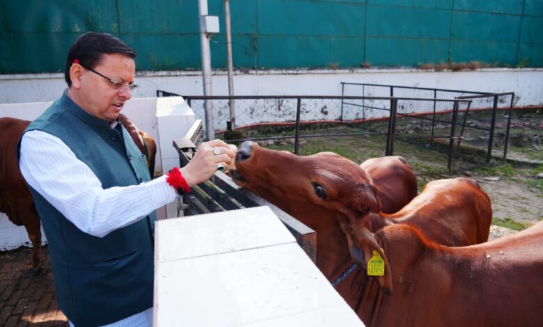 सीएम धामी ने गोवर्धन पूजा के अवसर पर मुख्यमंत्री आवास स्थित गौशाला में गौमाता की पूजा-अर्चना की