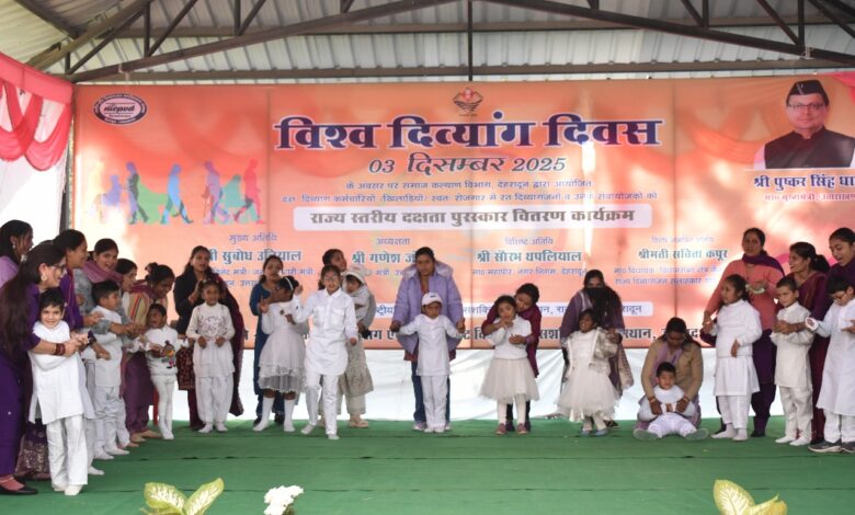 देहरादून 04 दिसंबर 2025: विश्व दिव्यांगता दिवस के अवसर राष्ट्रीय दृष्टि दिव्यांगजन सशक्तिकरण संस्थान एवं जिला समाज कल्याण विभाग देहरादून के तत्वाधान में बाबा साहेब भीमराव अम्बेडकर छात्रावास परिसर में भव्य समारोह आयोजित किया गया। मुख्य अतिथि मा0 कैबिनेट मंत्री सुबोध उनियाल एवं विशिष्ट अतिथि विधायक कैंट सविता कपूर विश्व दिव्यांगता दिवस पर कार्यक्रम का उद्घाटन किया। संस्थान के विद्यार्थियों द्वारा प्रस्तुत सरस्वती वंदना एवं स्वागत गीत ने पूरे वातावरण को दिव्यता और प्रेम से सराबोर किया। इस दौरान राज्य दिव्यांगजन सलाहकार बोर्ड के सदस्यगण अमित डोभाल, अनीता शास्त्री, नीरजा गोयल, ज्योति सजवाण एवं विजय सिंह तोमर भी मौजूद रहे।