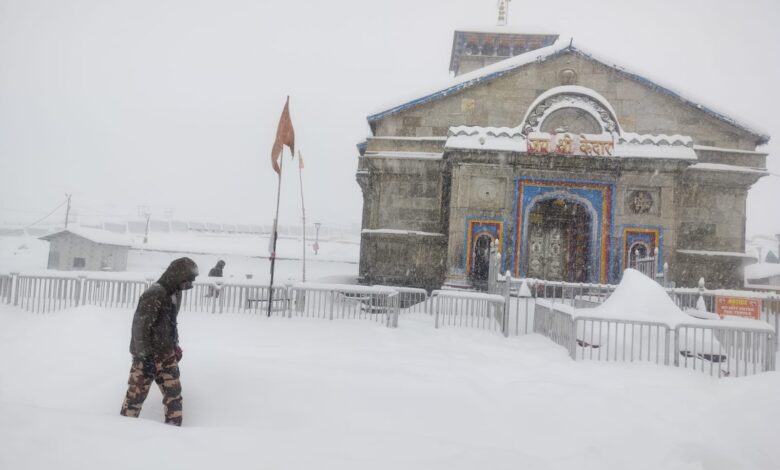 उत्तराखंड में भारी हिमपात और शून्य से नीचे तापमान के बीच केदारनाथ धाम में मुस्तैद सुरक्षा बल